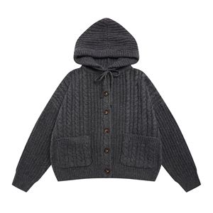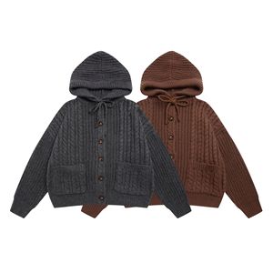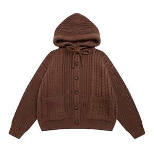 日系复古系带连帽开衫毛衣男女秋冬新款宽松百搭慵懒风针织衫外套