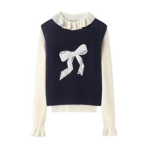 现货2025秋季新款甜美风蝴蝶结刺绣针织背心打底衫两件套XRV5M42A
