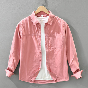 7718日系清新长袖衬衫新款男士时尚百搭文艺休闲宽松上衣一件代发