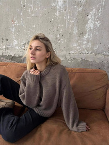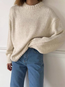 法式复古简约女士厚款套头圆领针织打底衫宽松慵懒长袖休闲上衣