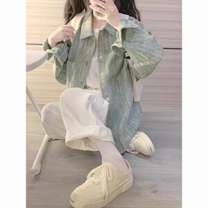 港味小香风休闲百搭polo领长袖衬衫女春秋季薄款宽松开衫夹克外套