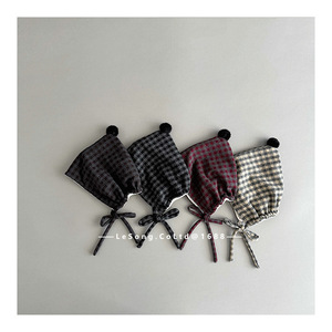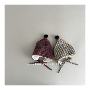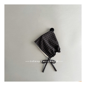 韩系秋冬儿童帽子时尚格子毛球护耳帽小月龄宝宝加厚保暖套头帽潮