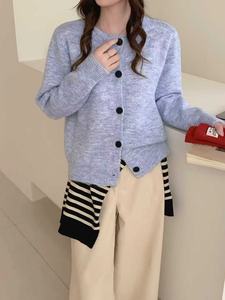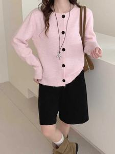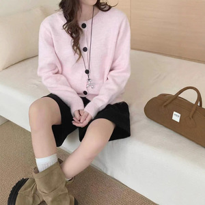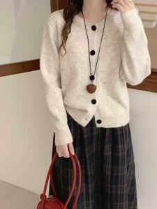 外贸温柔慵懒风圆领毛衣开衫女韩版宽松百搭小个子短款针织上衣潮