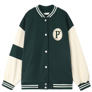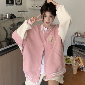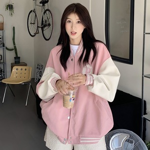 撞色棒球服女秋季2025新款复古宽松中长款字母刺绣BF风长袖外套女