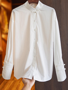 白色中式改良盘扣棉衬衫女2025秋季新款设计感小众国潮风唐装上衣