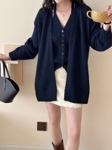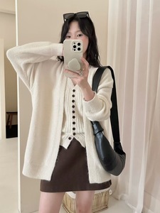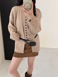 韩系v领挂脖吊带两件套针织开衫女2025秋冬新款休闲百搭毛衣上衣