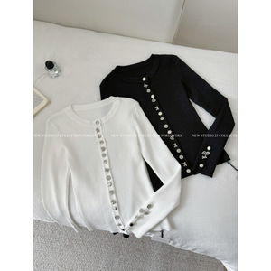 2025新款千金感气质重工多纽扣修身针织衫弹力百搭开衫时髦内搭