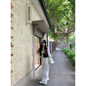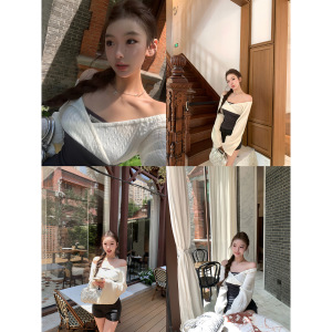 OYFF凡凡【希伯来语】设计感假两件撞色温柔显瘦修身露肩针织T恤