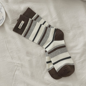 袜子女秋季中筒袜2025新款爆款超火女款网红款春秋条纹外穿潮长袜