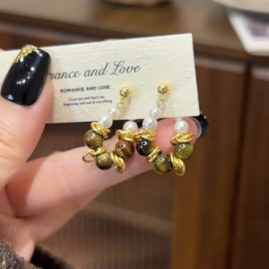 珍珠虎眼石流苏吊坠耳环法式复古宫廷风耳钉小众高级感耳饰批发女
