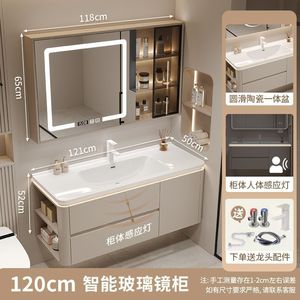 智能方镜加大口径陶瓷盆+送货到家无储物_120易清洁陶瓷一体盆+侧收纳