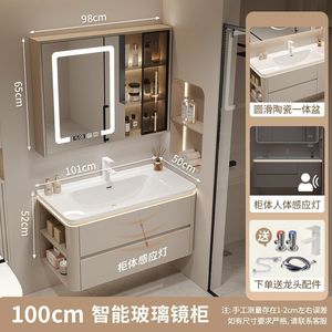 智能方镜加大口径陶瓷盆+送货到家无储物_100易清洁陶瓷一体盆+侧收纳