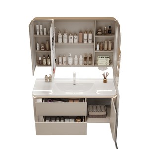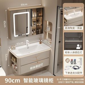 智能收纳镜柜加大口径陶瓷盆+送货到家_90易清洁陶瓷一体盆+侧边收纳