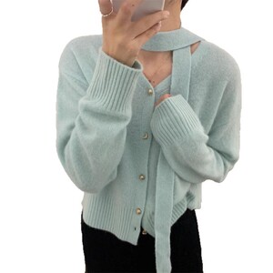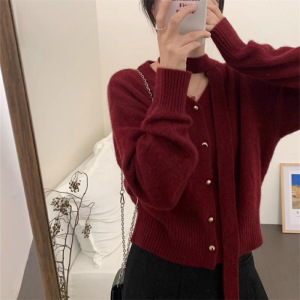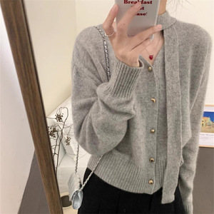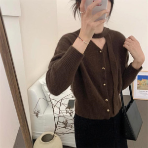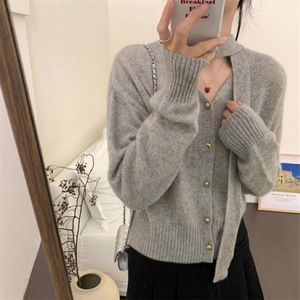 纯色简约百搭柔软舒适针织毛衣时髦洋气设计感单排扣长袖针织衫女