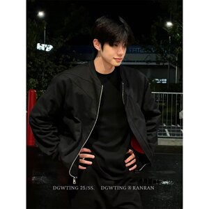 日系复古高级感立领外套男春秋款简约教练夹克男士立体剪裁上衣服