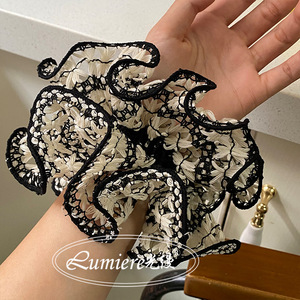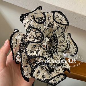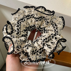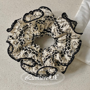 日韩ins时尚黑白毛线编织小蛮腰发圈气质高级感丸子头花发绳新款