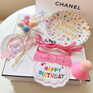 宠物狗狗猫咪生日派对装饰装扮围脖拍照道具围巾帽子围兜蛋糕蜡烛
