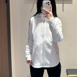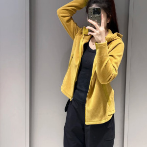 0918x9~户外运动收腰简约保暖透气撞色刺绣女士连帽抓绒夹克外套