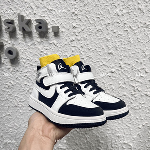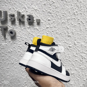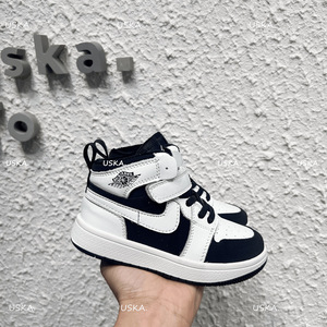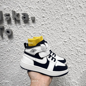 女童真皮aj板鞋2025新款秋冬男童高帮运动鞋韩版儿童黑白熊猫鞋潮