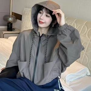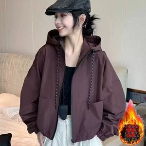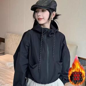 加棉加厚抽绳冲锋衣外套欧洲早秋新款欧货休闲宽松洋气上衣