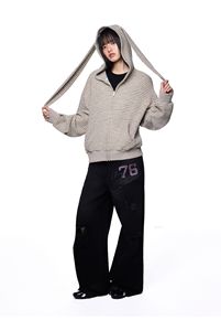 春秋季2025新款兔耳条纹连帽卫衣开衫外套女休闲宽松复古慵懒上衣