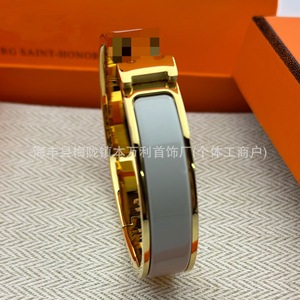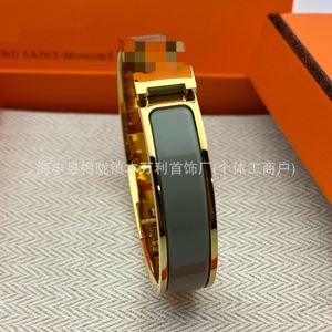 高版爱家V金H扣字母手镯珐琅彩猪鼻子时尚百搭黑武士手环厂家批发