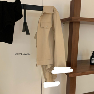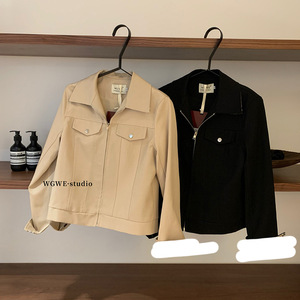 WGWE7259[伦敦雾行者]摩登时髦格纹拼接夹克百搭翻领短款外套