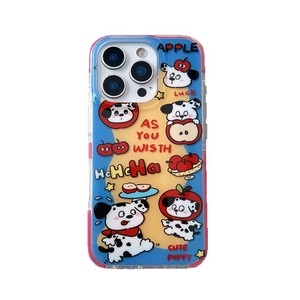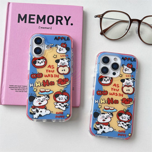韩系蓝围边英文红苹果狗狗适用iPhone17苹果16ProMax/15/14手机壳