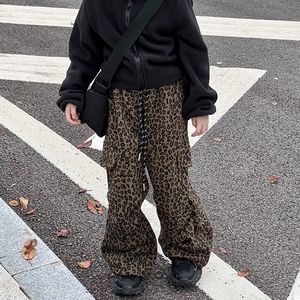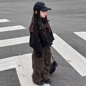 女童套装2025春秋新款男童大童洋气炸街短款冲锋衣外套豹纹抽绳裤