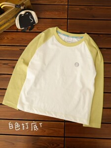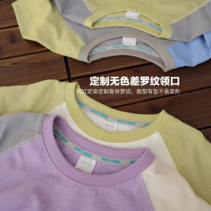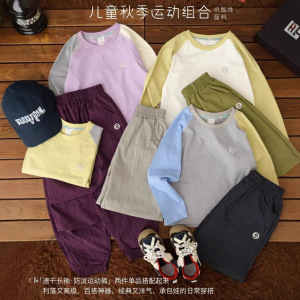 25ss秋季新款男女童拼色插肩袖T恤+气泡格运动速干裤中大童两件套