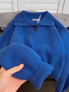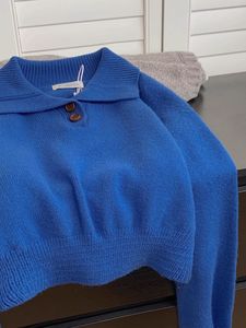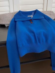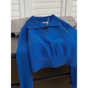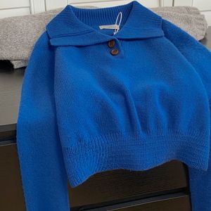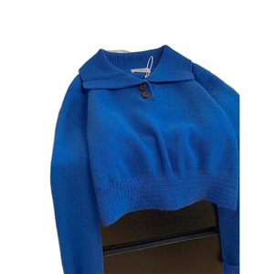 克莱因蓝慵懒风polo领翻领套头毛衣女秋冬小个子短款冬季针织内搭