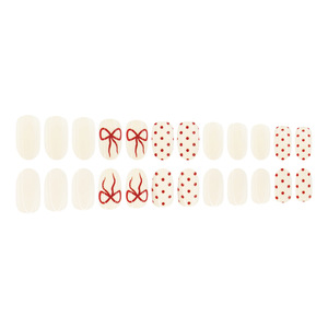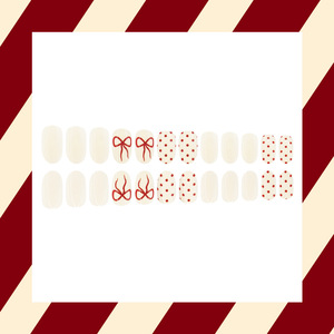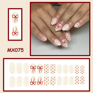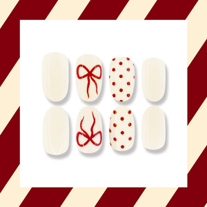 圣诞节红色蝴蝶结圆点精致风美学假指甲24片短圆甲片跨境穿戴甲