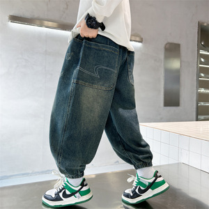 男童牛仔裤春秋款2025新款中大童男孩秋季直筒老爹裤儿童阔腿裤子