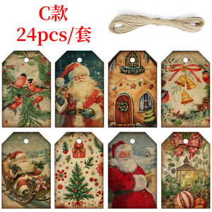 圣诞节复古麻绳吊牌C款【24pcs】