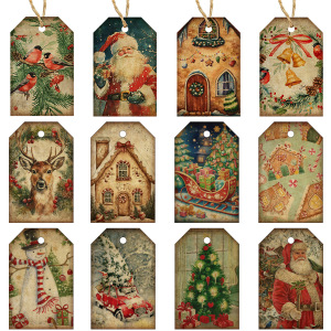 2025亚马逊圣诞节主题派对装饰标签送礼礼物布置麻绳吊牌批发定制