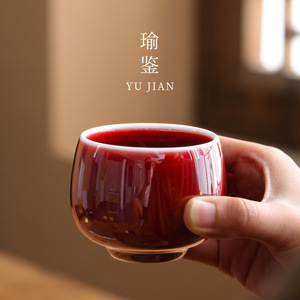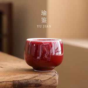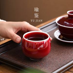瑜鉴 原矿郎红主人杯婚庆伴手礼红釉茶具高端礼品瓷教师节礼物