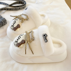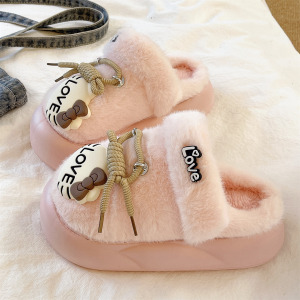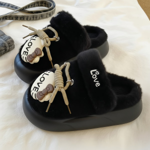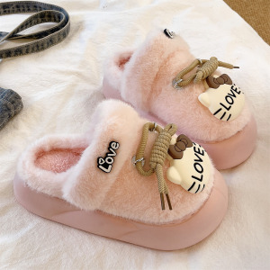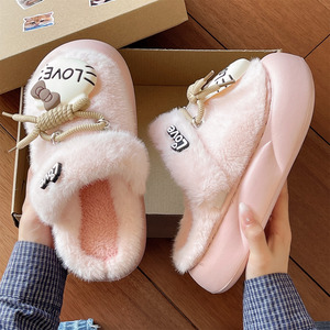 踩屎感棉拖鞋女秋冬季卡通新款室内家居厚底包跟毛绒保暖月子棉鞋
