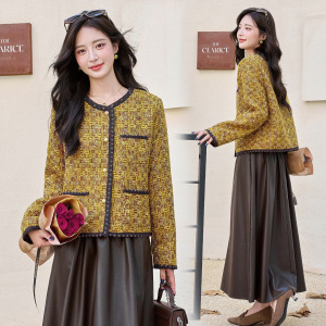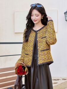 2025秋冬新款女装腔调感撞色编织纹粗花呢气质小香风外套 YJ8630
