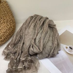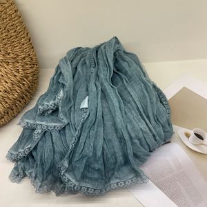 冬季围巾新款蕾丝花边清雅风棉麻围巾文艺范搭配裙子披肩女外搭