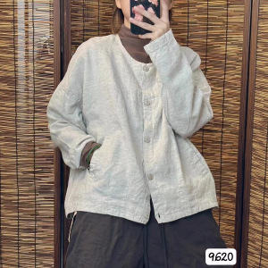 CO2025秋韩版宽松文艺复古简约亚麻加里衬休闲外套百搭上衣女9620