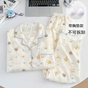 带胸垫一体甜美樱桃睡衣女春秋款云朵纯棉纱可外穿开衫家居服夏季