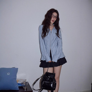 2025秋季新款双头拉链衬衫polo领街头风宽松设计感女长袖开衫上衣
