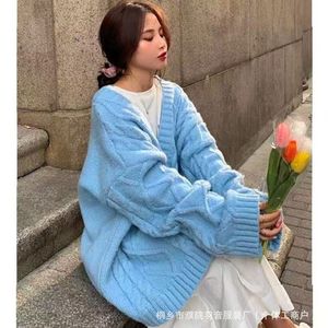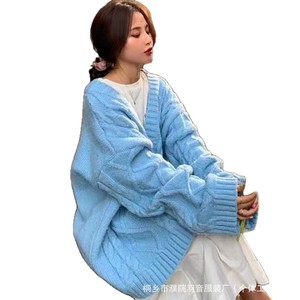 复古针织开衫软糯麻花重磅秋冬经典大码超厚百搭慵懒风毛衣外套女
