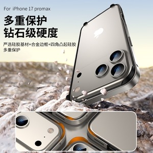 适用苹果iPhone17promax金属边框手机壳16Pro凸角款黑胶保护套15