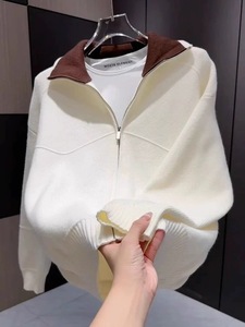 巴恩风撞色外套男春秋季美式复古针织开衫夹克男休闲宽松翻领上衣