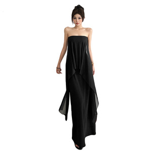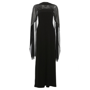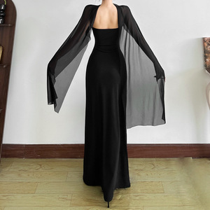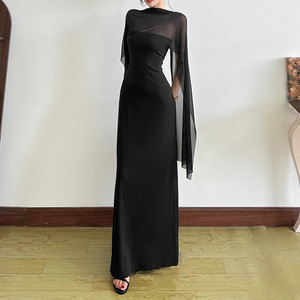 2025欧美夏季跨境新款时尚潮流不规则网纱披肩气质时尚纯色连衣裙
