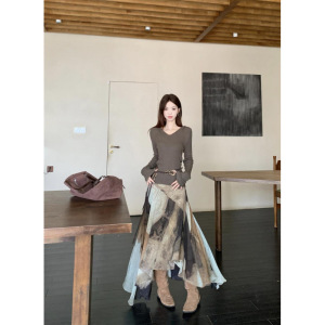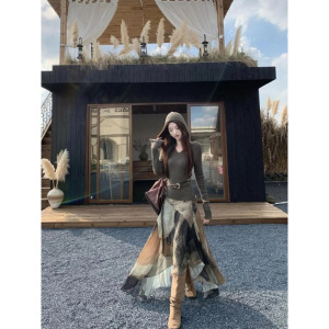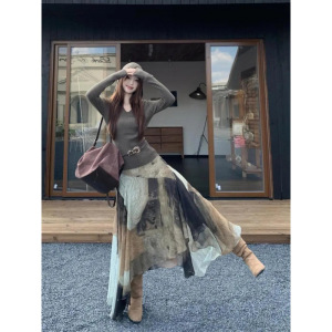 法式复古设计感连帽长袖针织衫女秋季新款不规则半身裙时尚两件套