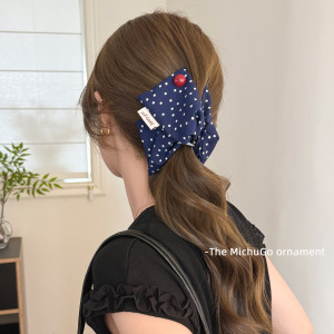 气质学院风藏蓝色格子波点三角抓夹网红鲨鱼夹后脑勺盘发夹头饰女