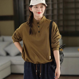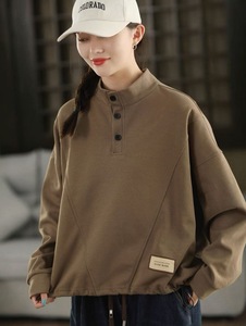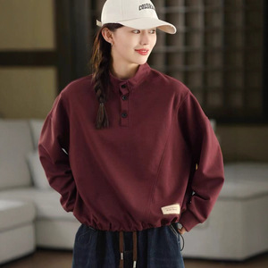 秋款复古针织棉卫衣后背字母抽绳摆长袖套头衫宽松休闲上衣显瘦
