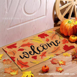 亚马逊秋季感恩节地垫枫叶印花玄关耐脏门垫防滑易打理脚垫代发